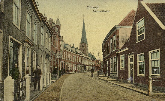 Heerenstraat gezien vanaf de van Vredenburchweg in de richting van de Kerklaan. Bijna al deze bebouwing is nu verdwenen.